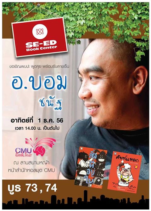 รวมภาพบรรยากาศ ในงาน CMU Book Fair ครั้งที่ 20 ที่มหาวิทยาลัยเชียงใหม่ ซึ่ง อาจารย์บอม ได้ไปพบปะ และแจกลายเซ็น ให้กับนักอ่านที่บู๊ท ซีเอ็ด เมื่อวันอาทิตย์ที่ 1 ธันวาคม 2556