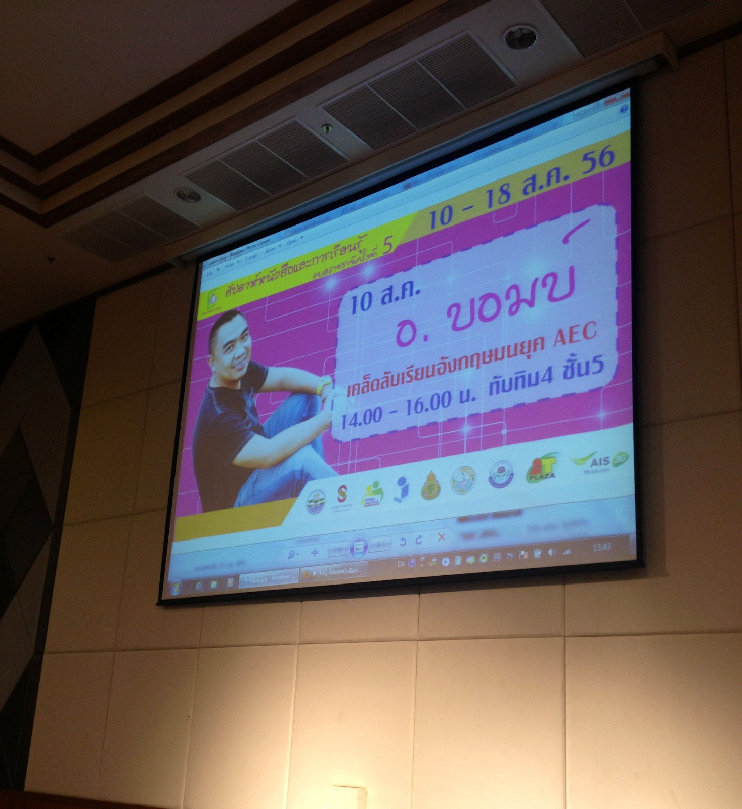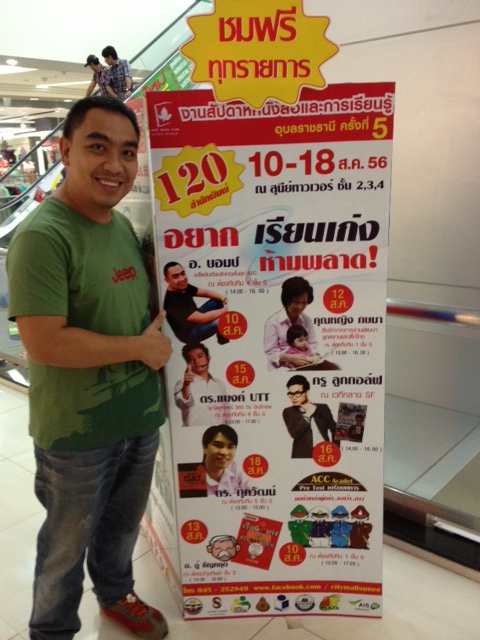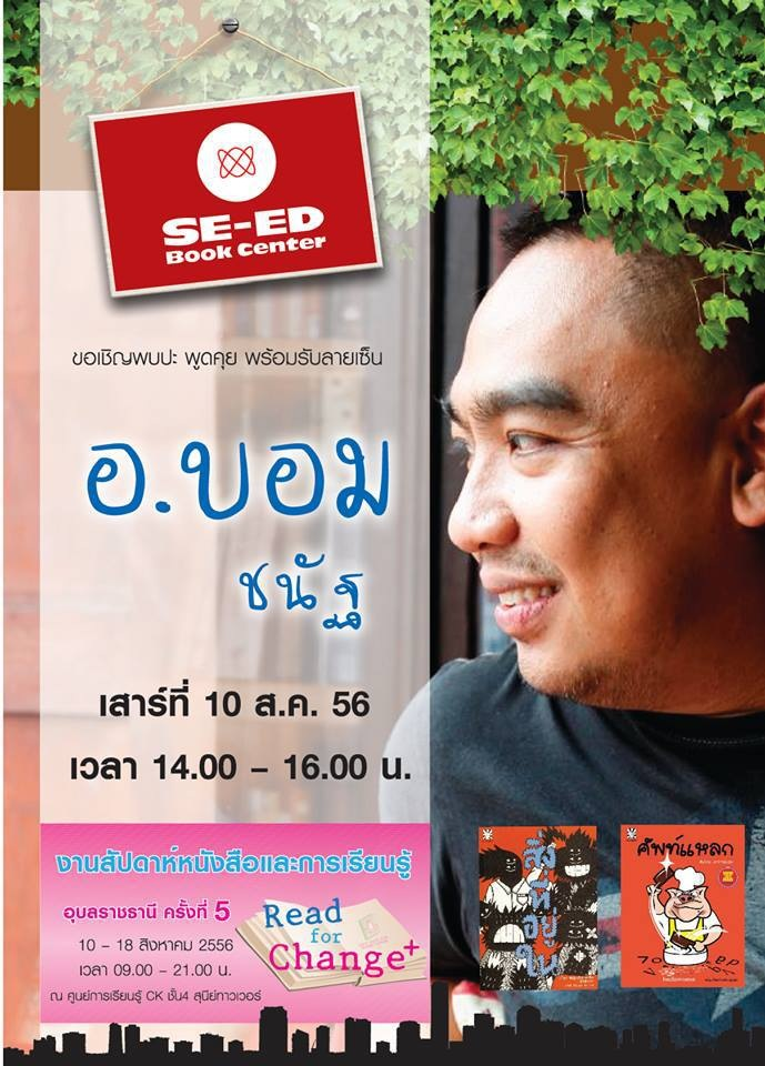 เมื่อวันที่ 10 สิงหาคม 2556 อาจารย์บอมได้รับเชิญให้ไปร่วมงาน "สัปดาห์หนังสือและการเรียนรู้ครั้งที่ 5" จังหวัด อุบลราชธานี โดยในงานนี้ ได้บรรยายเรื่อง "เคล็ดลับการเรียนภาษาอังกฤษในยุค AEC" และ แจกลายเซ็นให้กับแฟนๆ หนังสือที่อุบลฯ ด้วย บรรยากาศเป็นไปด้วยความสนุกสนาน อบอุ่น และ ผู้ฟังได้รับประโยชน์กันไปทั่วหน้า ขอนำภาพบรรยากาศมาฝากกันครับ